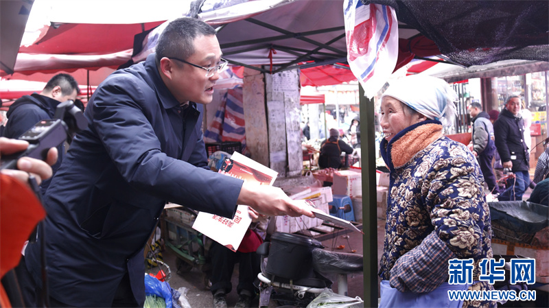 普法工作人员向菜市场商贩进行法治宣传。新华网发(杨馨慧 摄)