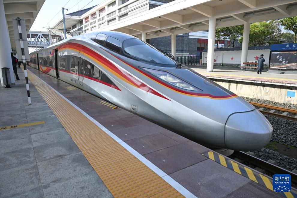 1月26日,贵州遵义开往延安方向的G3360次列车停靠在遵义站站台。新华社记者 杨文斌 摄