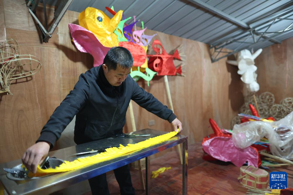 代鑫在制作毛龙(1月27日摄)。新华社记者 刘续 摄